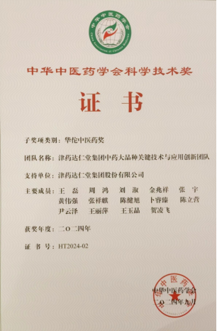 全国共有5个创新团队获得首届华佗中医药奖,津药达仁堂集团中药大品种关键技术与应用创新团队作为唯一一家企业团队脱颖而出。团队始终坚持将中医药理论和现代科技相融合,以可靠的循证医学证据和客观的基础研究数据,推动津药达仁堂的中药大品种不断做大做强,产生了显著的经济效益和社会影响力。