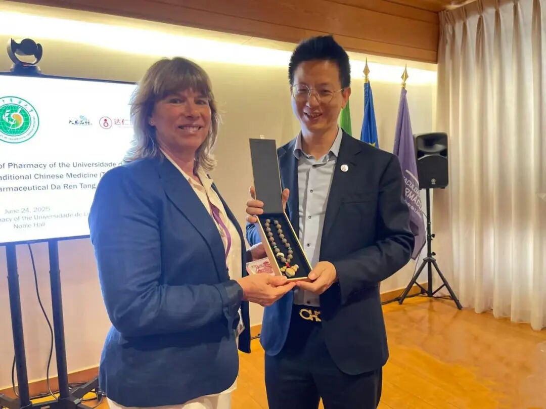 药学院院长Graça Soveral教授赠送达仁堂纪念品
