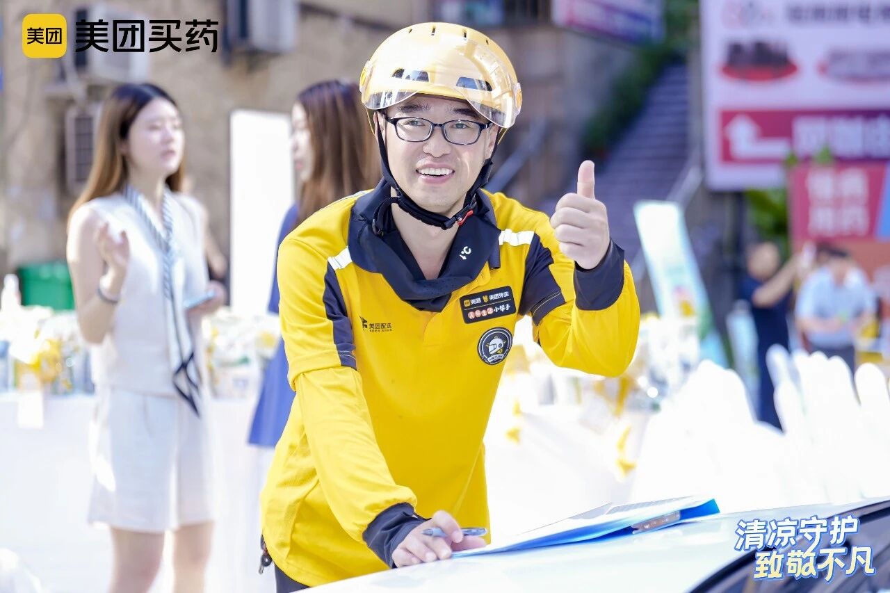 在重庆江北五里店泉源堂药房,一位拿到清凉物资的骑手说。