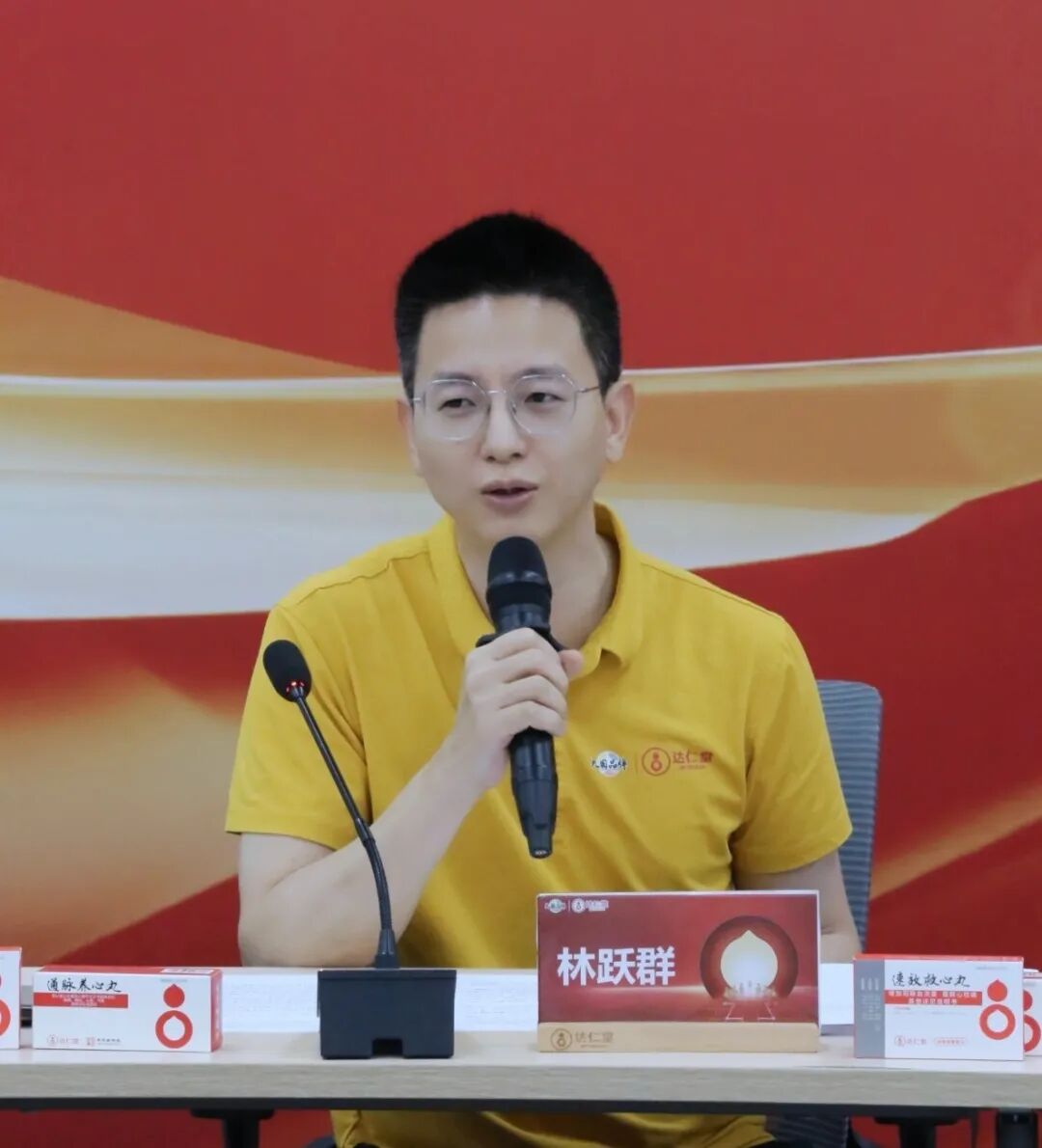 津药达仁堂总经理助理、营销负责人林跃群,感谢中国健康促进基金会和天津市胸痛与复苏学会的鼎力支持,他表示,"达仁堂将积极响应'健康中国2030'战略部署,持续深化达仁堂速效救心公益行动,为提升全民心血管健康水平贡献力量。"