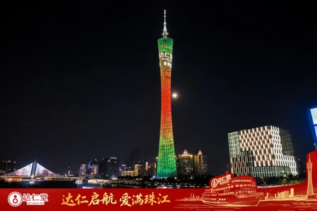 8月9日晚,珠江两岸夜色璀璨。"达仁启航 爱满珠江"速效救心公益行(广东)发布暨"达仁堂号"游轮首航仪式盛大举行。