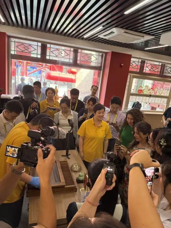 馆内设置的多个互动环节成为全场焦点。中外记者亲手体验传统山楂丸的手工制作,在药师的指导下,从称药、和药到搓丸,每一步都体现着传统技艺的严谨与巧妙。品尝自己制作的山楂丸,酸酸甜甜,好吃又好玩,那感觉“倍儿哏”!